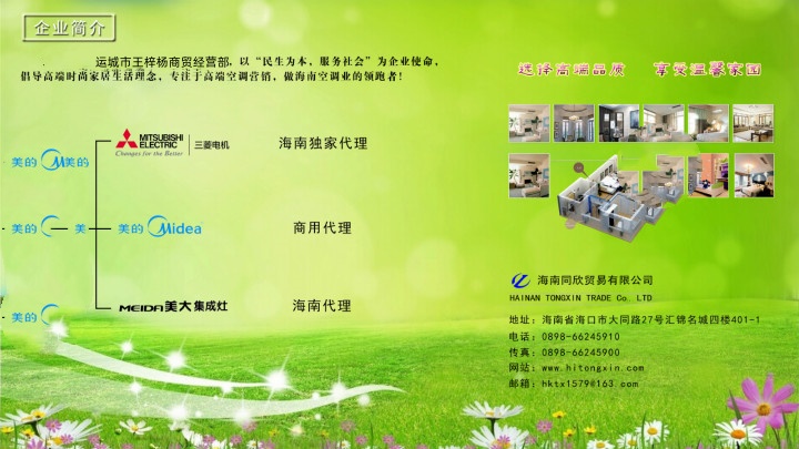 宜昌市本聚商贸有限公司是三菱电机家用和商用空调全省独家代理, 美的商用变频空调和空气能热水器全省独家代理,浙江美大集成灶海南省代理。