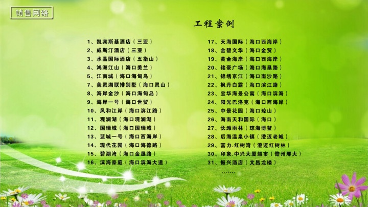 我们以“人才成就企业,企业造就人才”为人才发展战略,拥有一支骁勇善战的销售团队,销售网络覆盖海南省18个市(县),100多个营销网点,售前、售中和售后均实行专业的网络系统管理,对空调安装、维修实行百分百的跟踪回访服务。凭借自身完善的销售网络平台和优质服务,我们成为国内外知名的空调厂家(三菱电机、美的等)指定的海南区域批发、零售、安装维修服务单位。